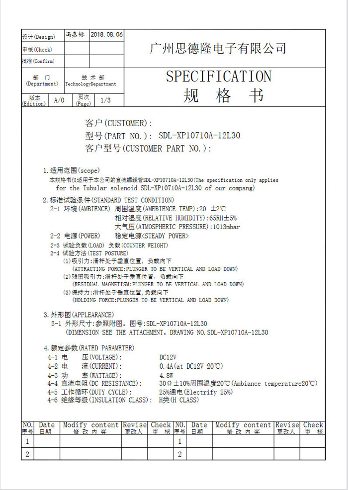 | 電壓: | DC12 V | 行程: | 電阻: | 30Ω | 功率: | 4.8W | |